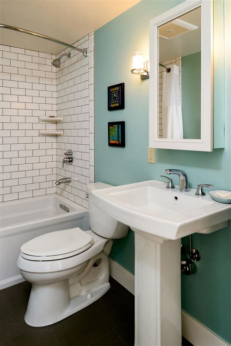 A gorgeous ombre statement wall is a great idea to transform your small bathroom into a work. The primary colour palette of this bath area is white, with a contrast of black and white patterns on the floor. Personal sized wooden product box. Here are five creative design ideas for small bathrooms: This is beneficial because some bathroom products, like.