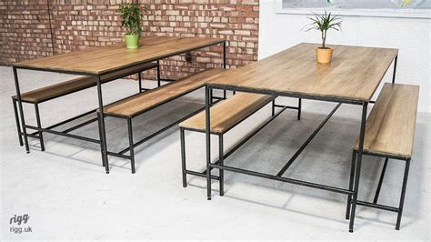 £0.00 £750.00 | / add to cart size. Industrial wood dining table and bench set, wooden kitchen table, chunky industrial dining table. Industrial dining table rustic metal 2 bench set. Add to cart key highlights. Industrial dining and kitchen tables including dining sets with chairs, benches, large and small mixing solid woods and reclaimed woods with metal legs and frames.