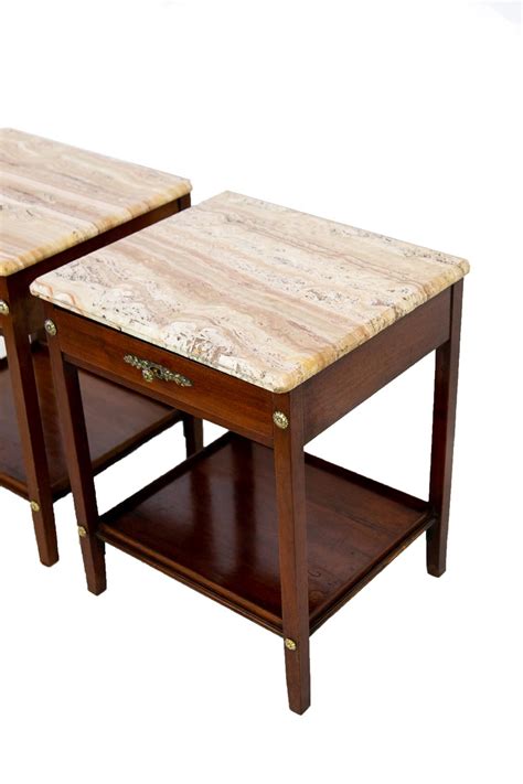 Set of 2 square marble top end table in cherry. 20 w x 20 d x 22 h Round marble top side tables with rustic gold metal bases, set of 2. Tripoli genuine marble end table with storage. The side table was handcrafted by skilled and passionate artisans in india, giving each piece its own distinct look and quality.