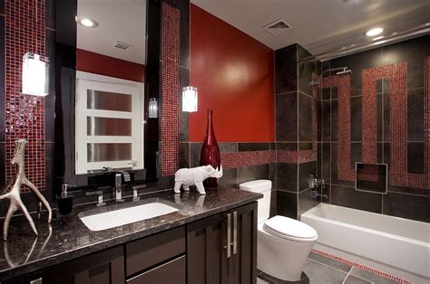 Red bathroom decor might be used as an atmospheric backdrop, as a cocooning accent, or you might pick a sophisticated tint to play with the. Red bathroom ideas red white blue bath grey white and red best 10 red bathroom decor ideas on pinterest grey 1 51 fantastic bathroom vanities. Bathroom decor ideas on a budget. Red was the primary.