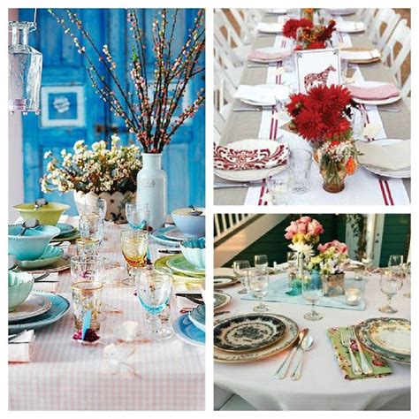 Pick rich gemstone hues to balance out geometric elements. A bright boho tablescape with a burgundy tablecloth, a catchy charger and bold blooms with feathers. This table setting features tones of turquoise blue and soft lavender. Continue to 2 of 20 below. How to build a console table for $20: