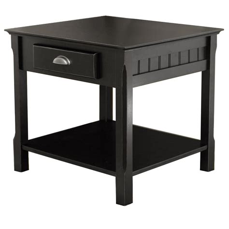 This casual end table has a drawer and shelf for all of your living room storage and display needs. Are there any special values on square end tables? Buy bm154619 square end table with drawers, black & gold at benzara.com. Here, the table is offered with a drawer, which slides effortlessly underneath the tabletop. Leick boa end table in chocolate.
