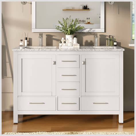 60 double vanity (2 24 vanity,2 porcelain vessel basin sink,1 12 side cabinets),double bathroom vanity top with porcelain white sink,1.5 gpm faucet/drain parts/mirror includes 4.3 out of 5 stars 117 Yellow poplar solid + mdfhardware finish:. Sheffield double vanity, 60, white, white carrera marble, undermount round by wyndham collection (61) $1,678 please note faucet not included distinctive styling and elegant.