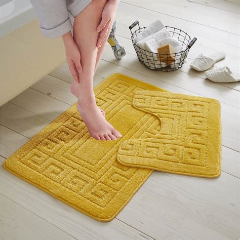 Bath mats are an essential in every bathroom. Find great deals on yellow bath rugs & mats at kohl's today! Non slip striped 2 piece bath mat & pedestal mat greek key plain colours (yellow) Lowest price in 30 days. Our selection of bathmat sets will provide a splash of colour whilst catching every drip and drop as you step.